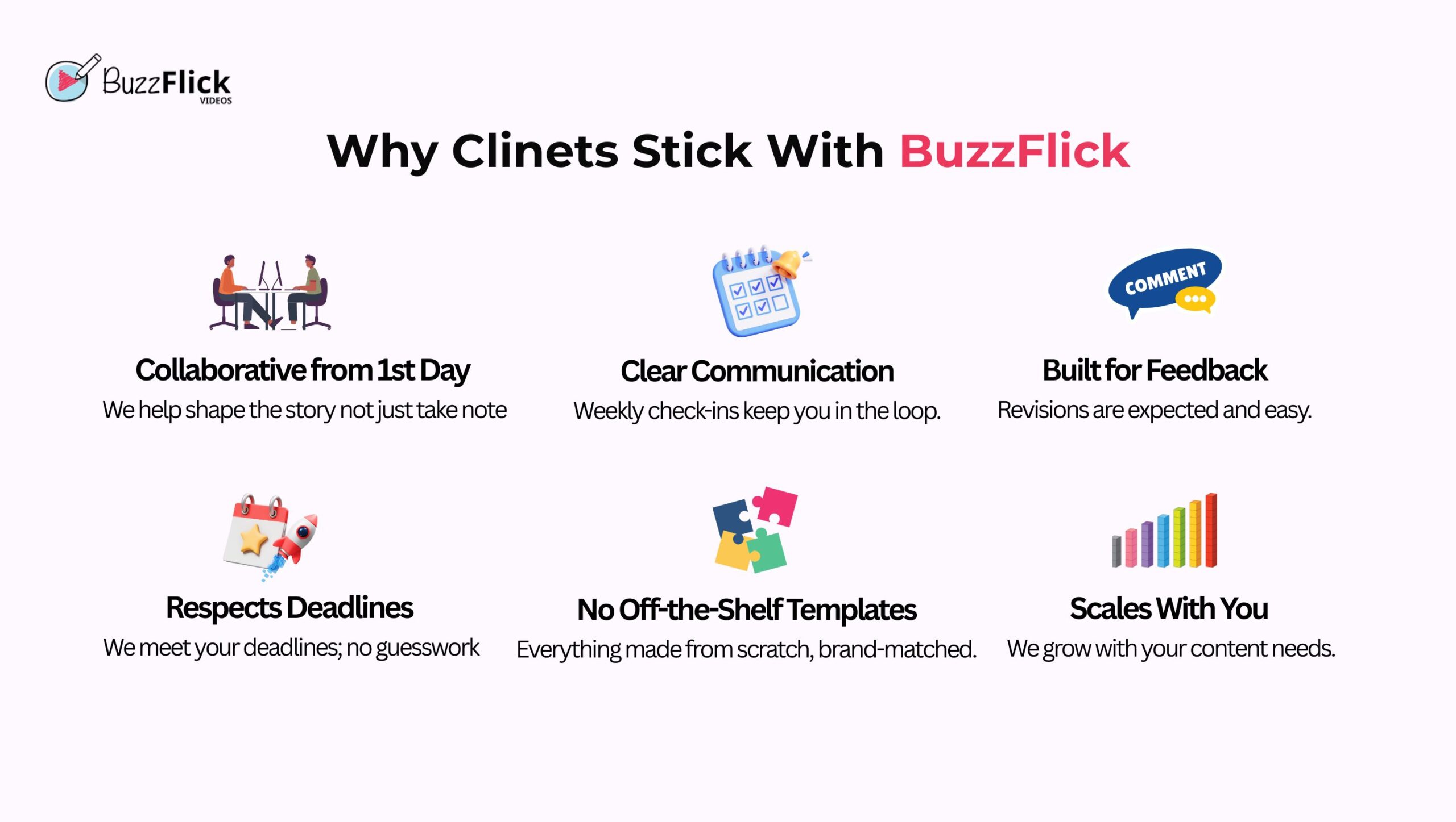 What made them stay? The answer was simple: BuzzFlick animation listens, communicates, and delivers exactly what’s needed without making it difficult.