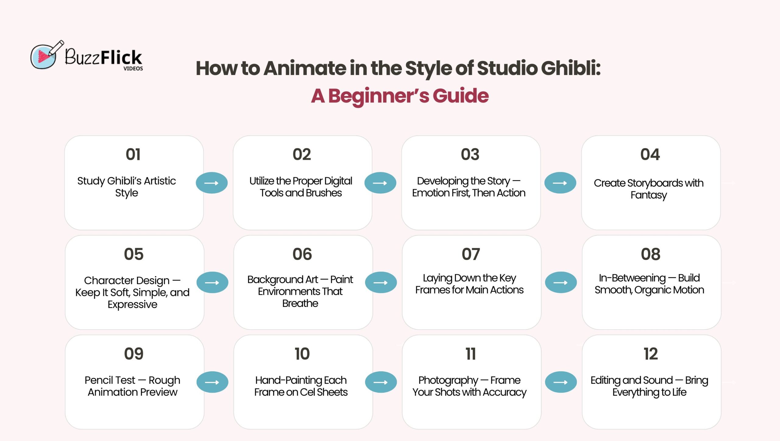 The following are the processes that will help you produce your Ghibli-style animation: