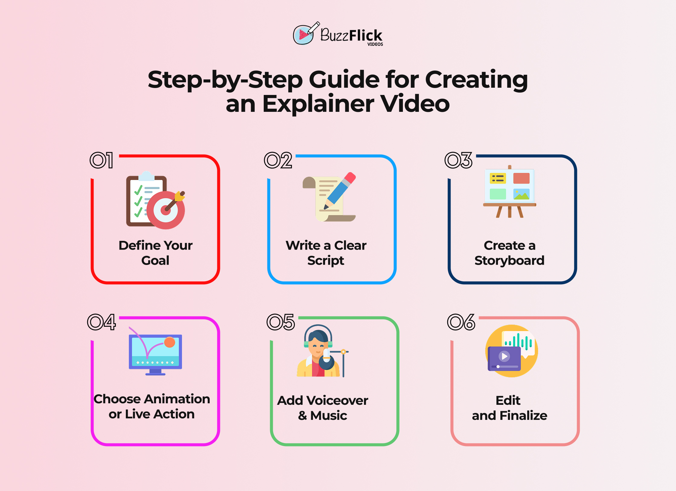 Now, at this point, you’re most likely thinking: “Okay, I understand what an explainer video and how to create it. But do I actually want to do all of this by myself?” Most likely not. That’s where BuzzFlick steps in.